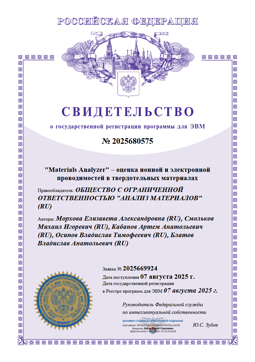 The Materials Analyzer project has been created at the LLC "Materials Analyzer" and partially funded by Foundation for Assistance to Small Innovative Enterprises in Science and Technology (FASIE) project no. 5290ГС1/101640.
